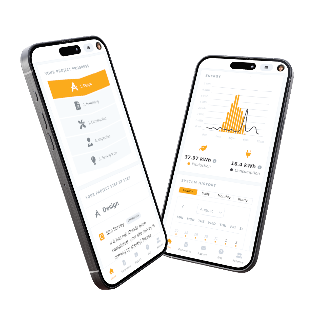Everything about your Solar Project, from the Contract, to Invoices, Warranties, Manuals and more are made available to you within a dedicated area in the app. You will never wonder where any of your important documents are.
